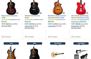 When you walk into a large music store with a big selection, you can sit and play the instrument you're thinking of buying. You can ask the salesman to try out more than one, and pick the one that feels or sounds right to you.